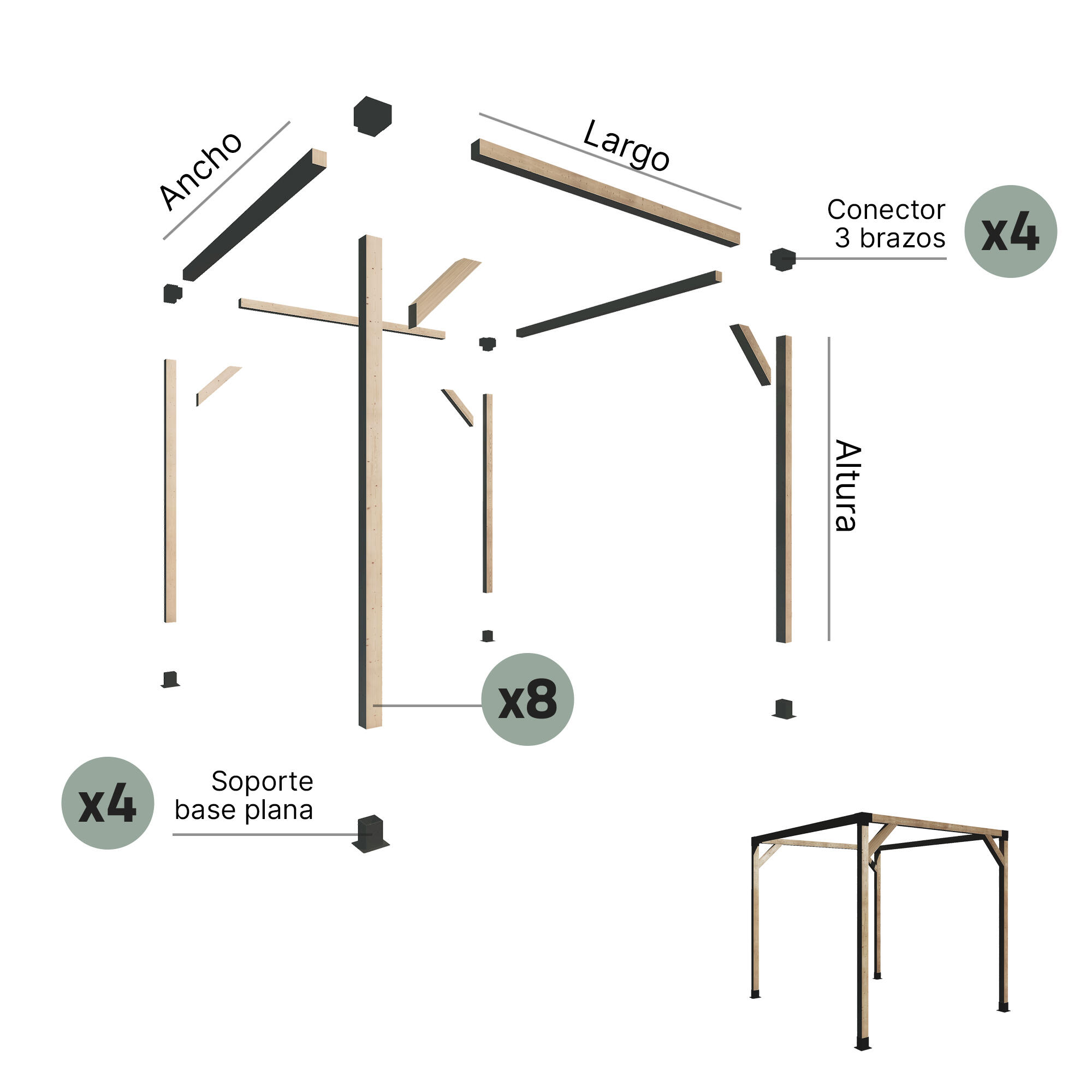 Poste de madera maciza tratado autoclave de 9x9x240 cm para pérgola