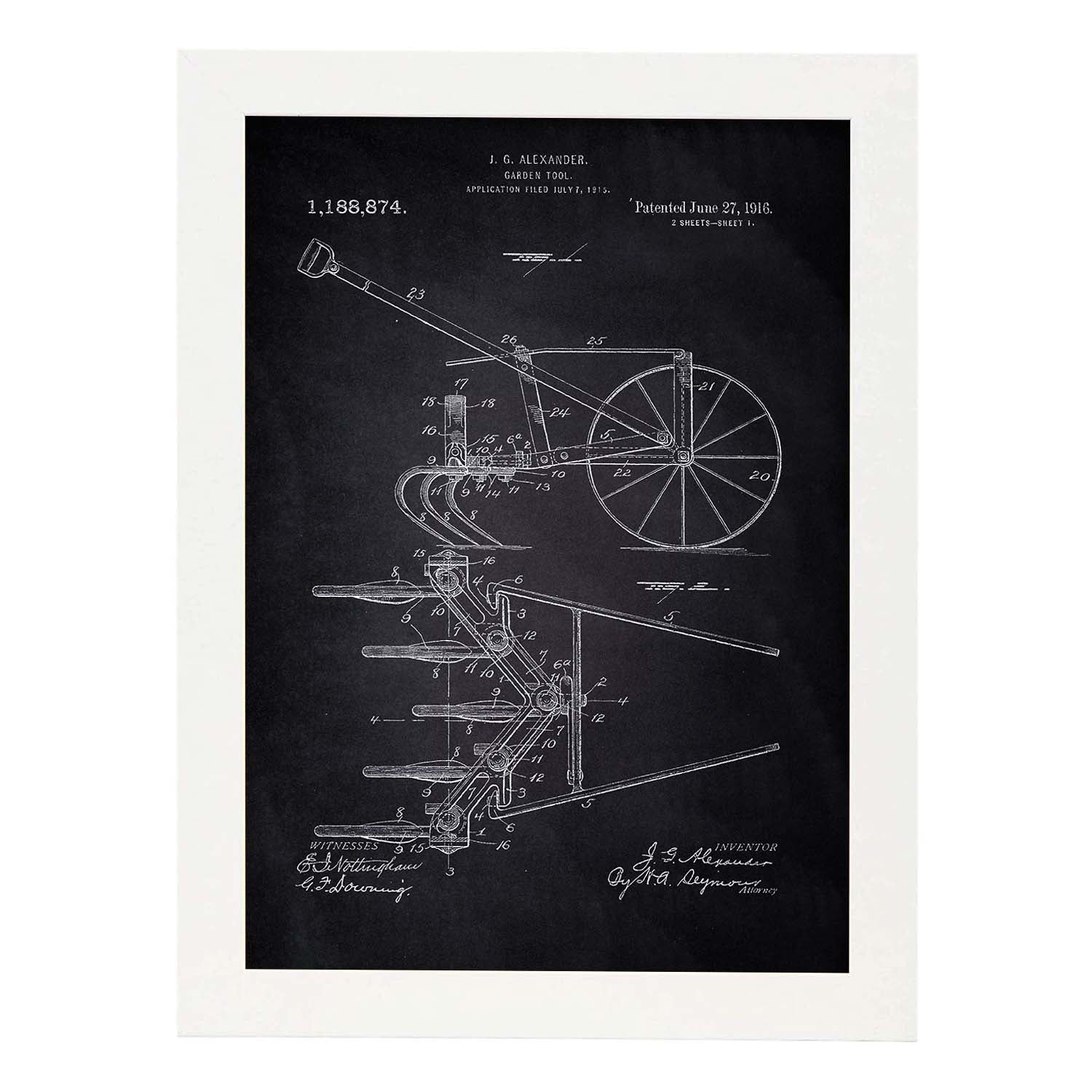 Poster Con Patente De Arado. Lámina Con Diseño De Patente Antigua Marco Negro - A4