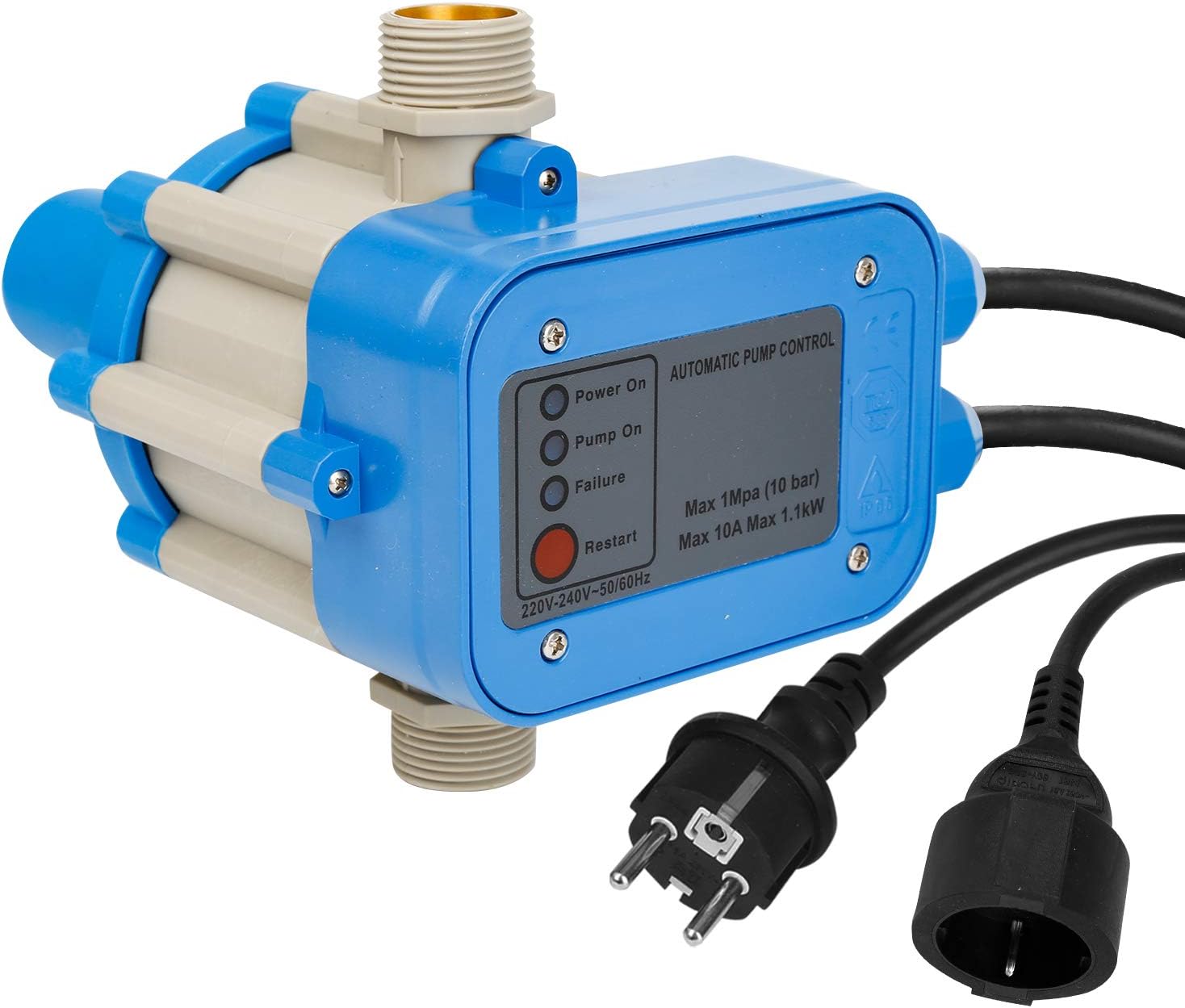 【Presión de agua constante】Este presostato garantiza una presión de agua constante al regar el jardín o suministrar agua potable: ~230 V ±10 % / 50 Hz | Clase de protección IP: IP65. Presión máxima de funcionamiento: 10 bar. Con cable azul. 【Monitorización en tiempo real】Cuando se activa la bomba, esta se enciende y se apaga automáticamente según la apertura y el cierre del suministro de agua. Esto garantiza una presión constante en el sistema de agua potable. 【Válvula antirretorno integrada】Mantiene una presión constante; la válvula antirretorno integrada y la protección contra funcionamiento en seco protegen eficazmente la bomba y prolongan su vida útil. 【Sistema fiable y sin mantenimiento】El control de la bomba elimina los efectos de las fluctuaciones de presión. Ya sea para el suministro de agua potable, el riego del jardín, el bombeo de piscinas o tareas de limpieza, este control de bomba ofrece un excelente rendimiento de regulación, control automático y una protección fiable contra funcionamiento en seco. Su diseño compacto permite una fácil instalación entre la bomba y los dispositivos conectados (p. ej., grifos y mangueras de jardín). Ya no es necesario ajustar manualmente el interruptor de la bomba de agua.