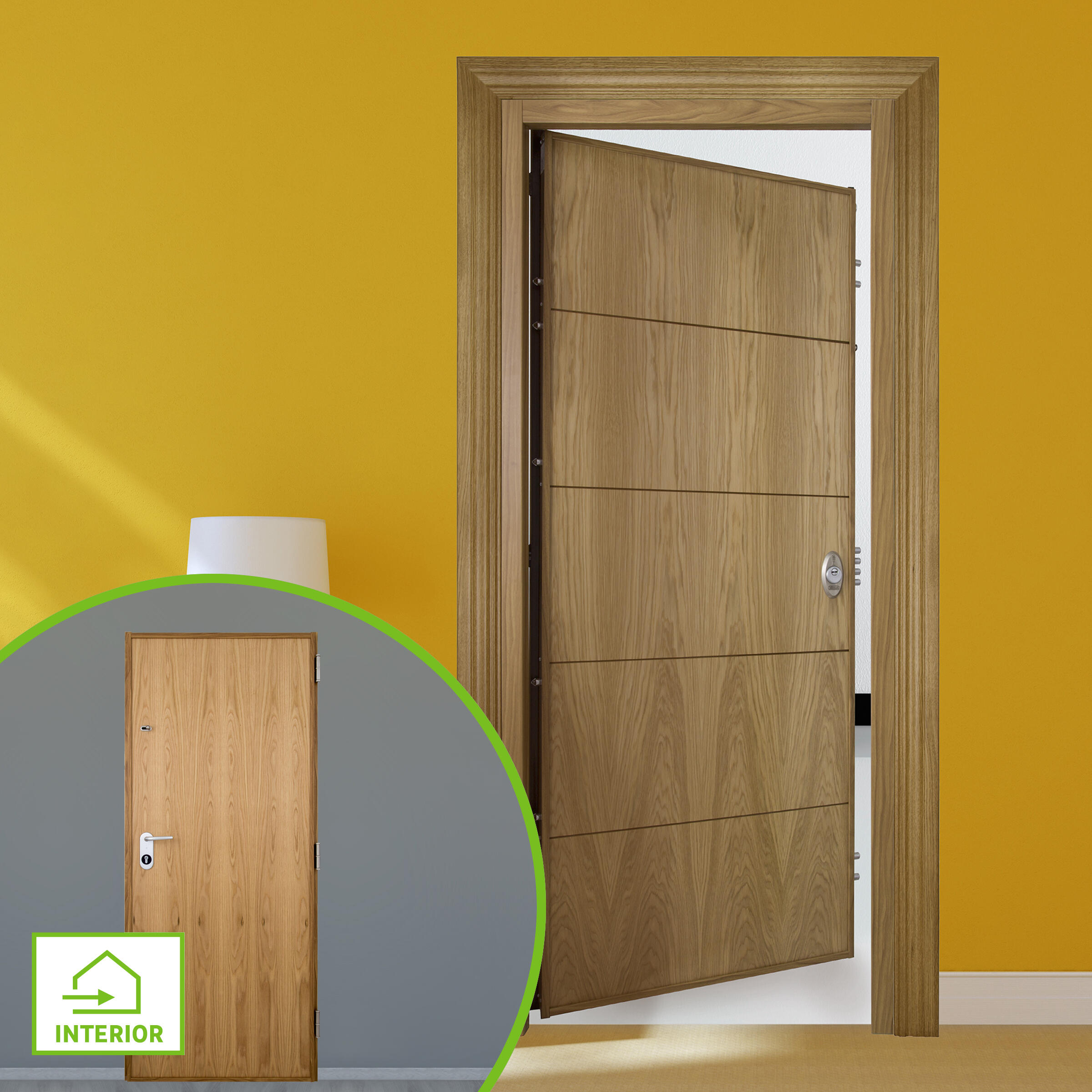 Puerta de entrada acorazada serie V fresada roble / interior liso roble apertura izquierda 206x89cm