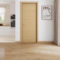 Puerta de interior abatible ciega maciza acabado laminado Line Berna Roble miel apertura izquierda cerco de 7x3 anchura 72.5 cm
