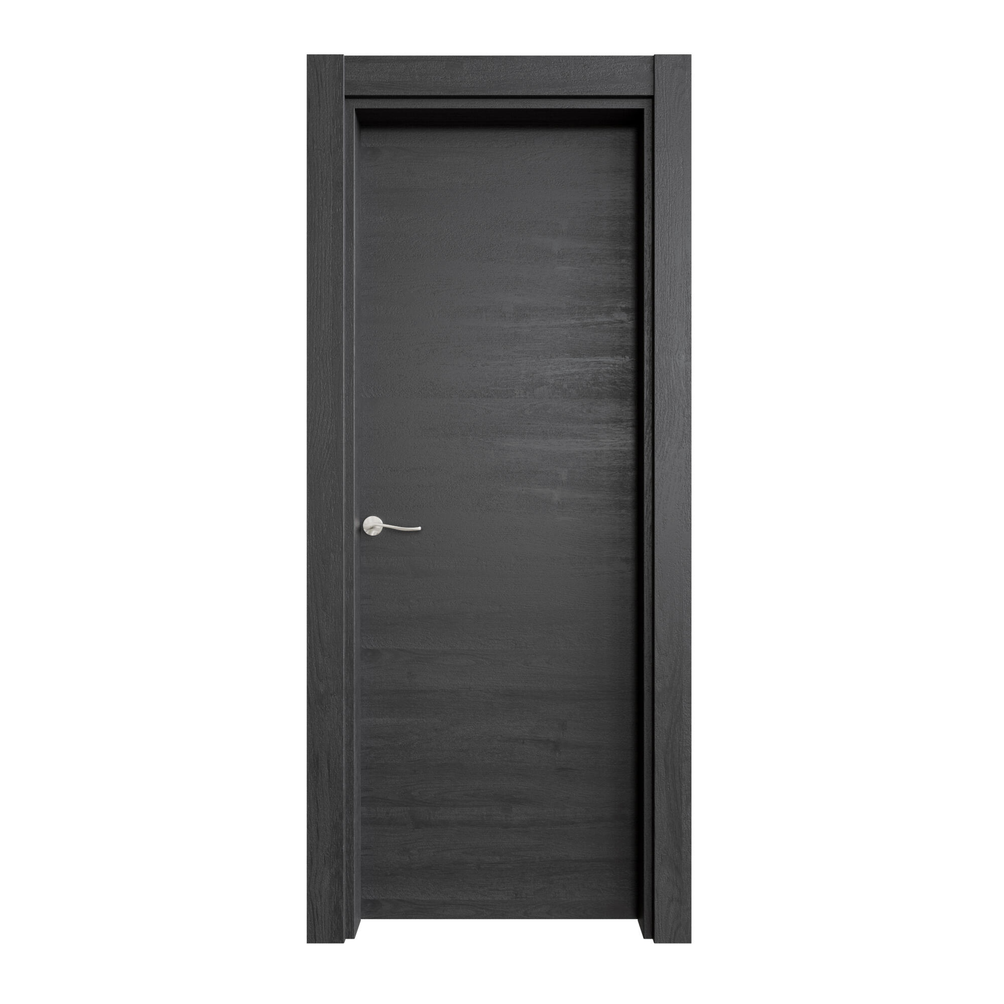 Puerta de interior abatible ciega maciza acabado laminado Line Oslo Azabache Negro apertura derecha cerco de 11x3 anchura 72.5 cm