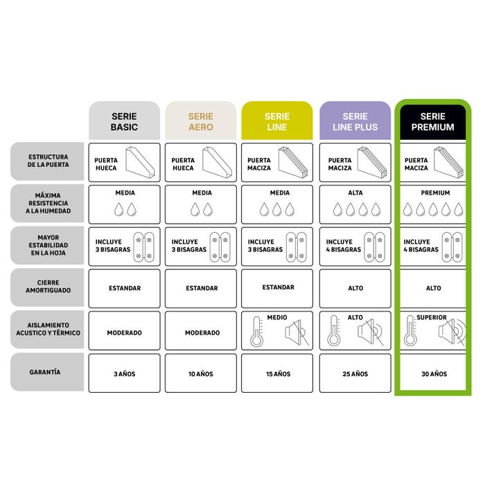| Estructura de la puerta | Macizo |