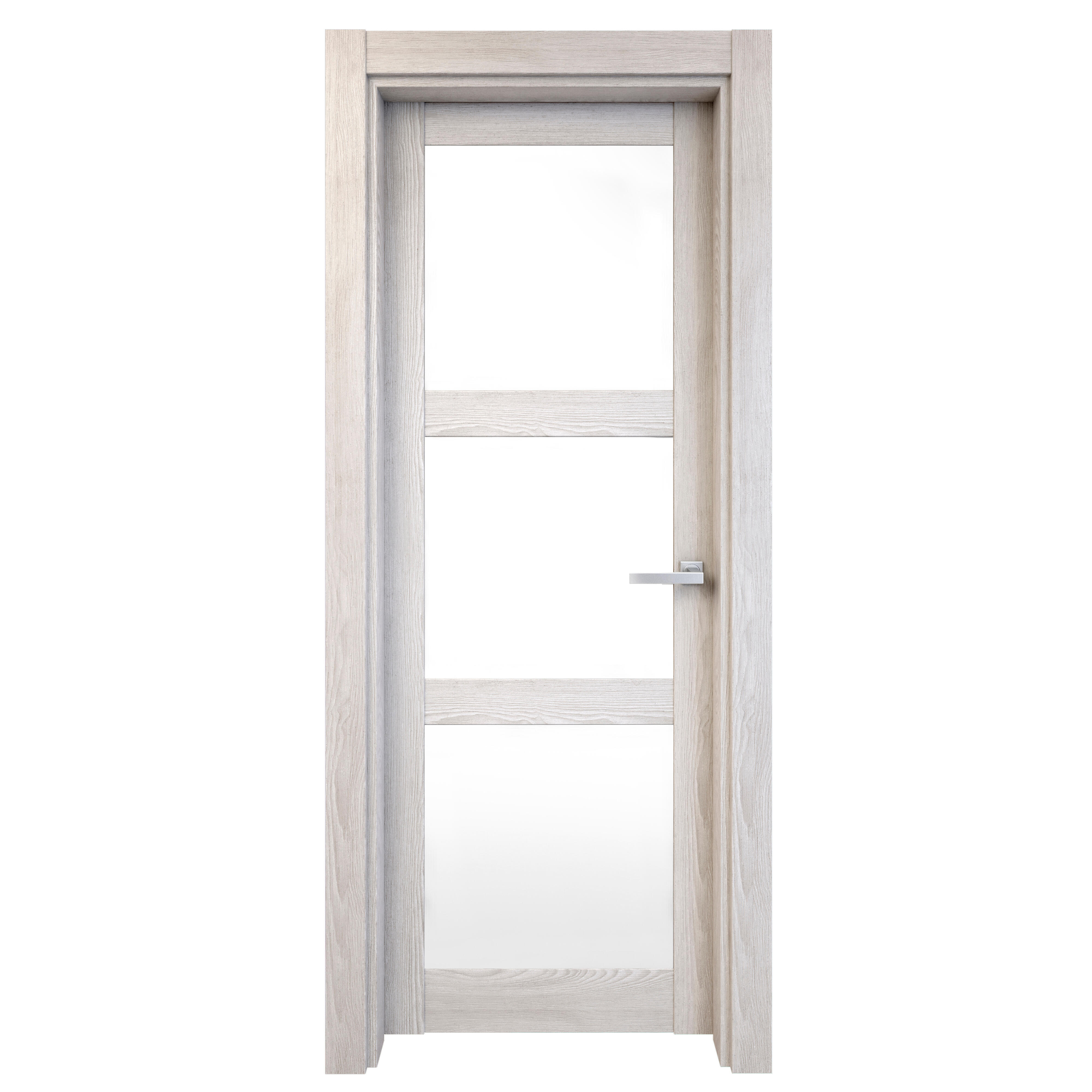 Puerta de interior abatible con cristal maciza melamina Line Plus Moscú blanco apertura izquierda cerco de 7x3 anchura 72.5cm