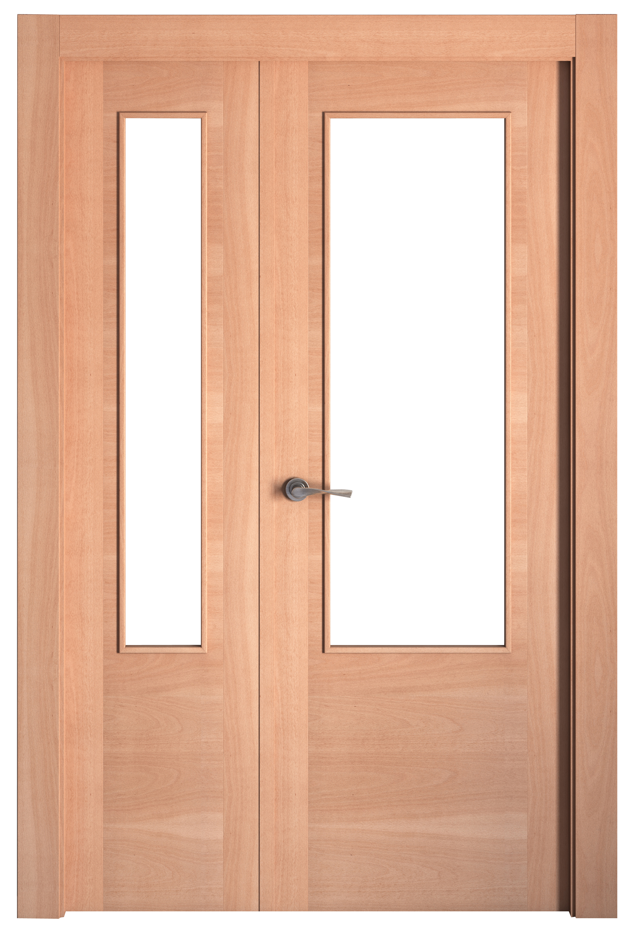 Puerta de interior abatible doble con cristal maciza barnizada Line Plus Niza haya apertura derecha cerco de 7x2 anchura 145cm