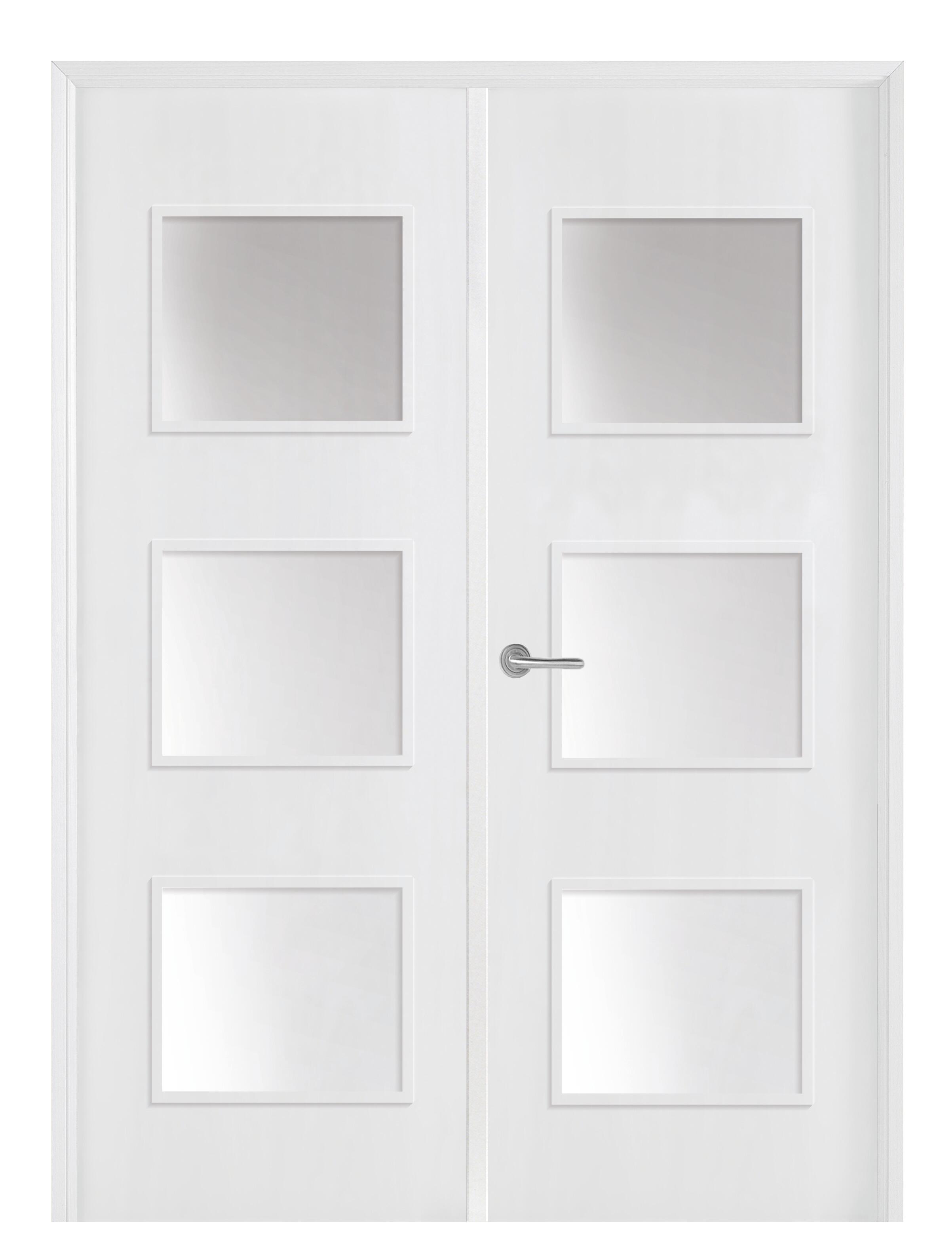 Puerta de interior abatible doble vidriera con cristal incluido maciza acabado lacado Line Plus Bari Blanco apertura derecha cerco de 7x3 anchura 145 cm