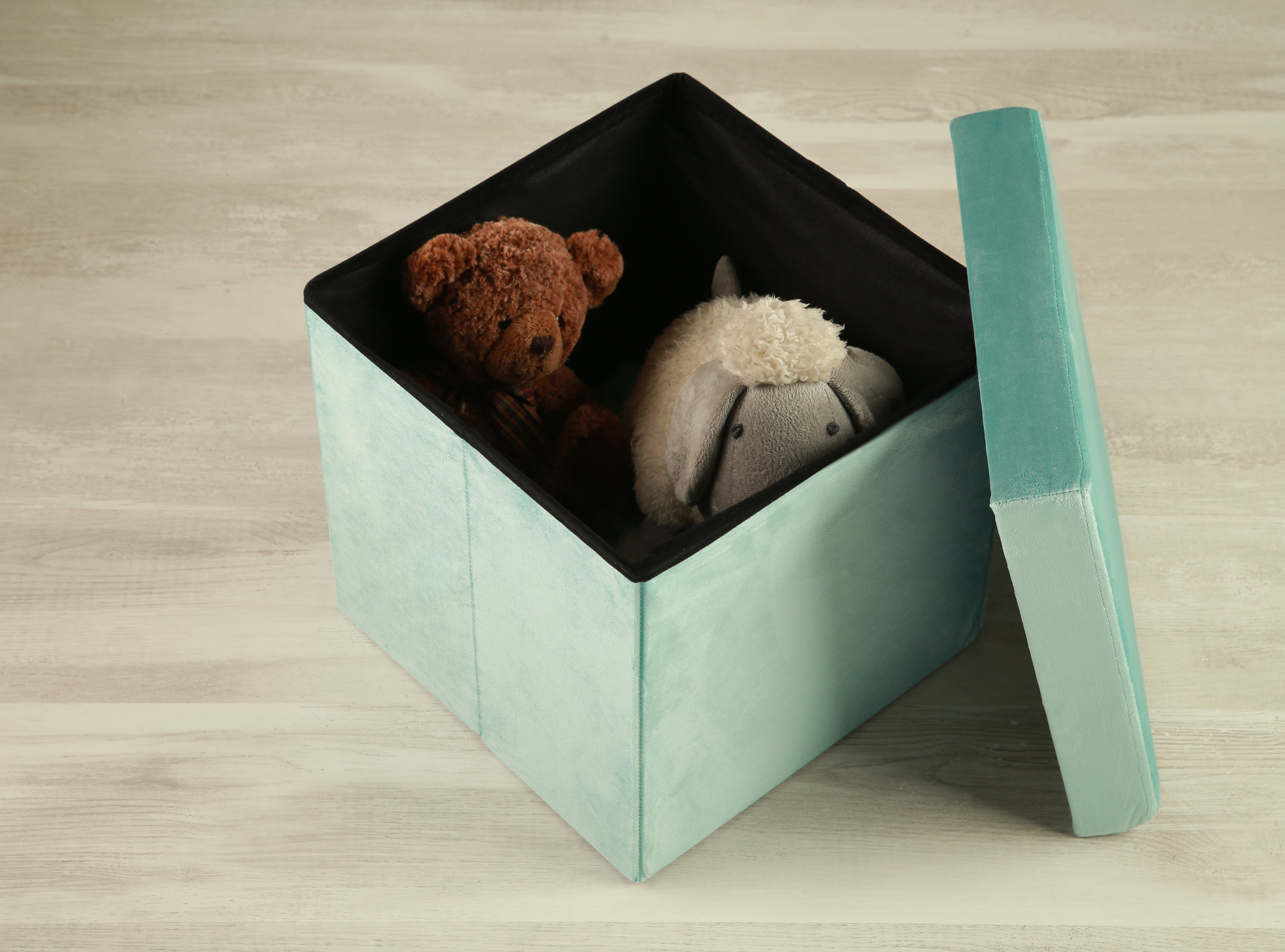 Puff decorativo poliéster cuadrado Terciopelo agua 38x38x38cm