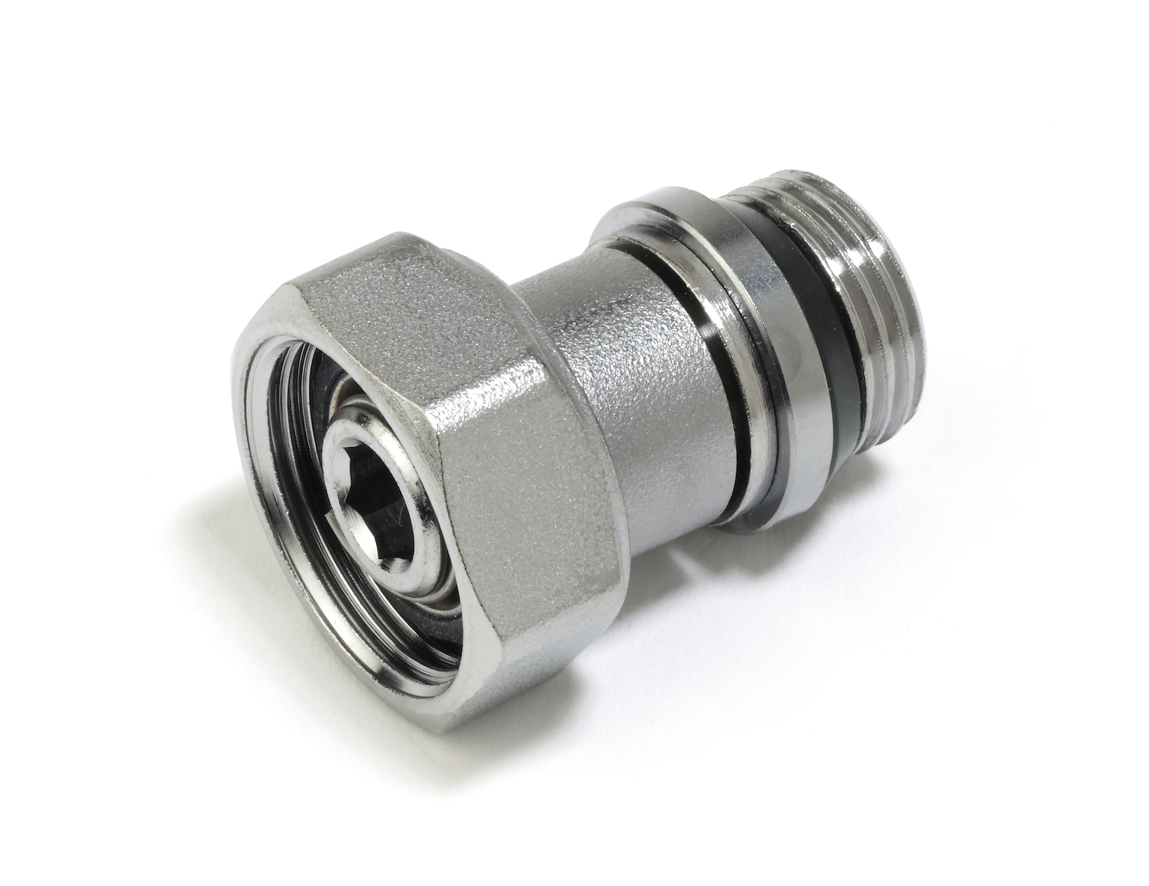 Rácor telescópico en latón cromado, con autojunta y asiento cónico con tuerca,