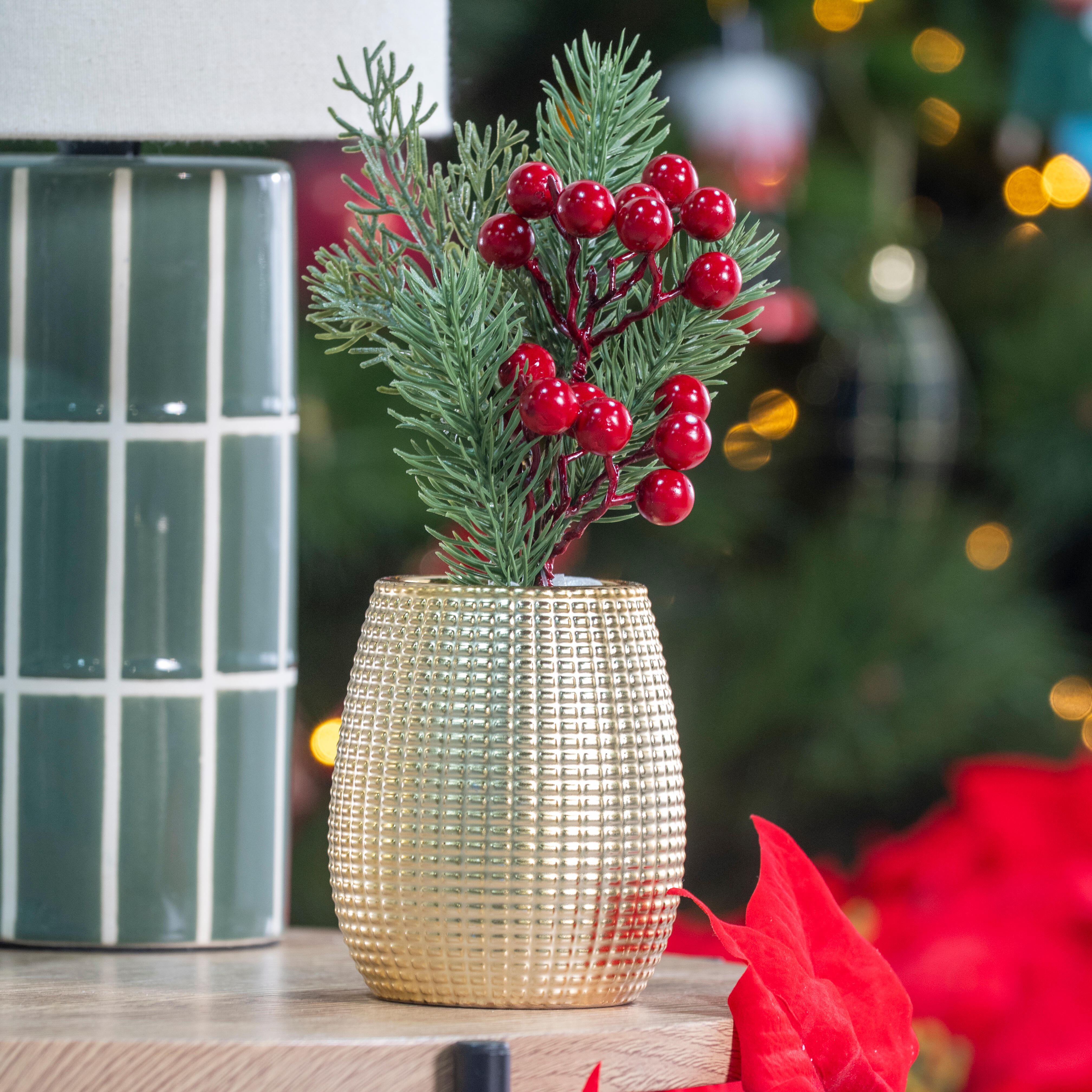 Rama de pina decorativa con bayas rojas, set de 36 piezas - l25cm