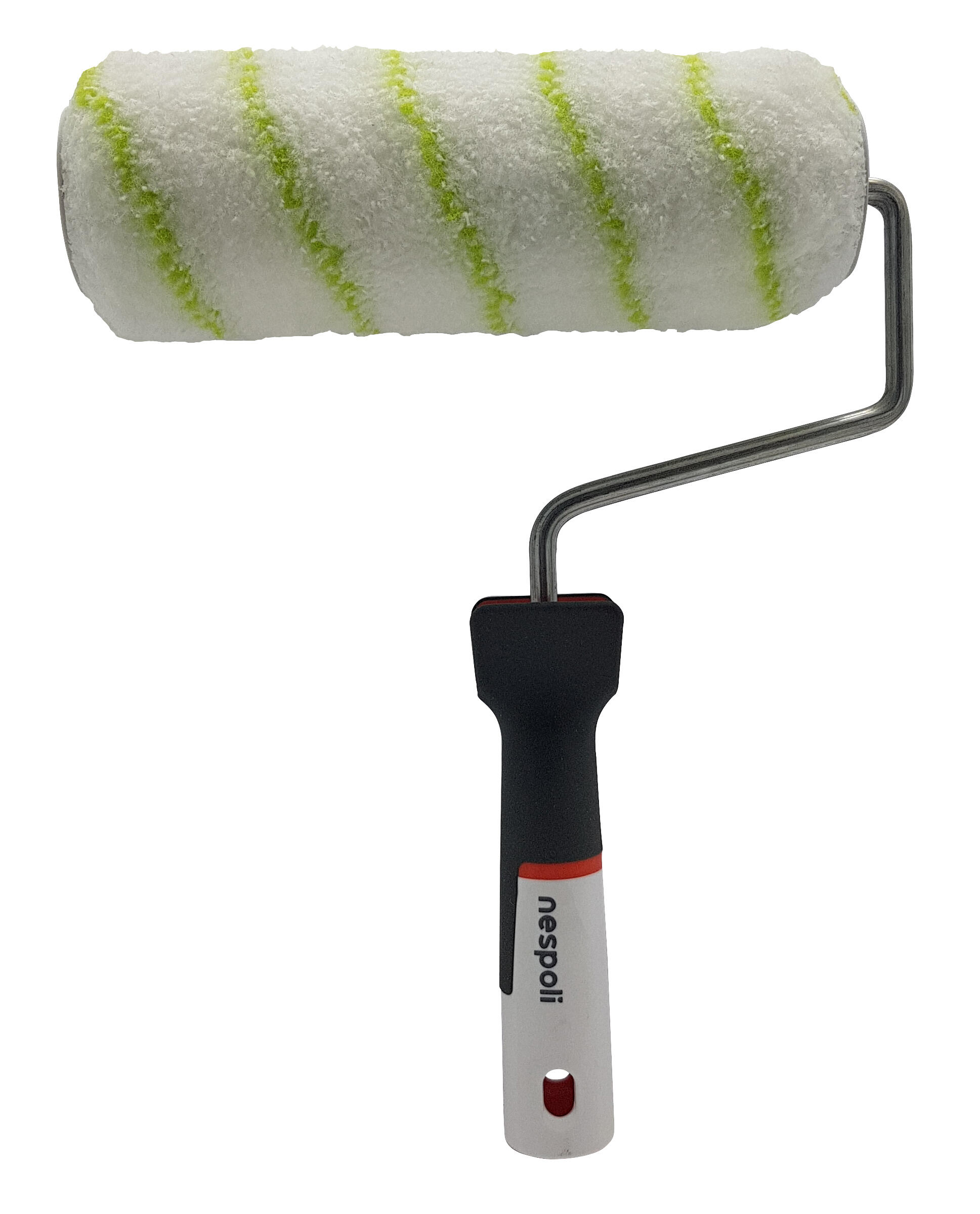 Rodillo NESPOLI de 110 mm de anchura, 50 mm de diámetro, pelo largo (más de 12 mm). Fibra de poliamida. Varilla de acero.