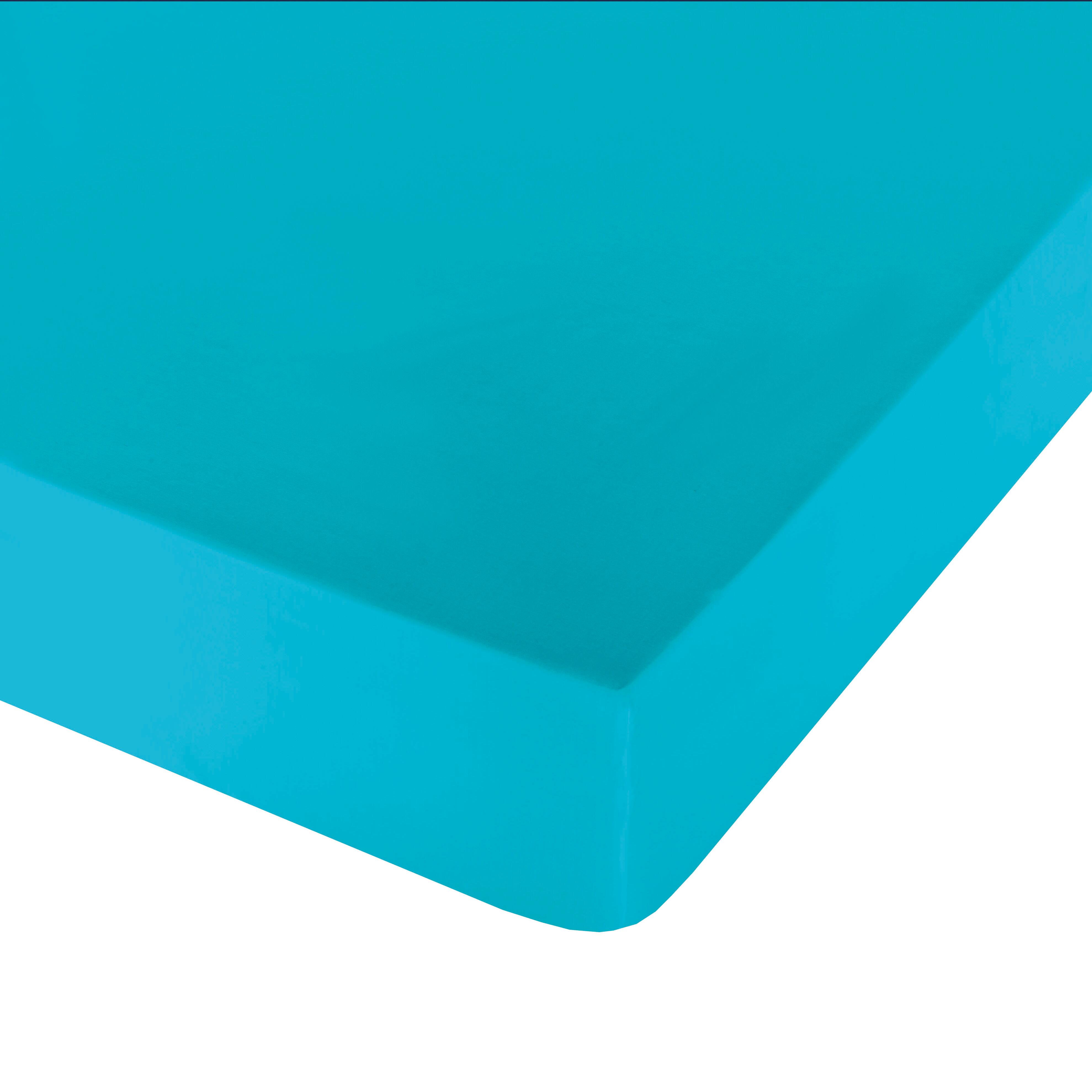 Sábana bajera para camas de 150 cm, fabricada en 100% microfibra en color turquesa. Su diseño con ajuste elástico en las esquinas asegura un ajuste perfecto en el colchón, evitando desplazamientos durante la noche. Medidas: 150x190/200 cm. (ancho/largo)