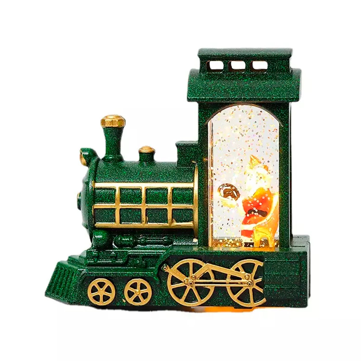 Santa Claus en Tren con luz led. 12,5x6x12 Cm. Color: Verde Oscuro DAM