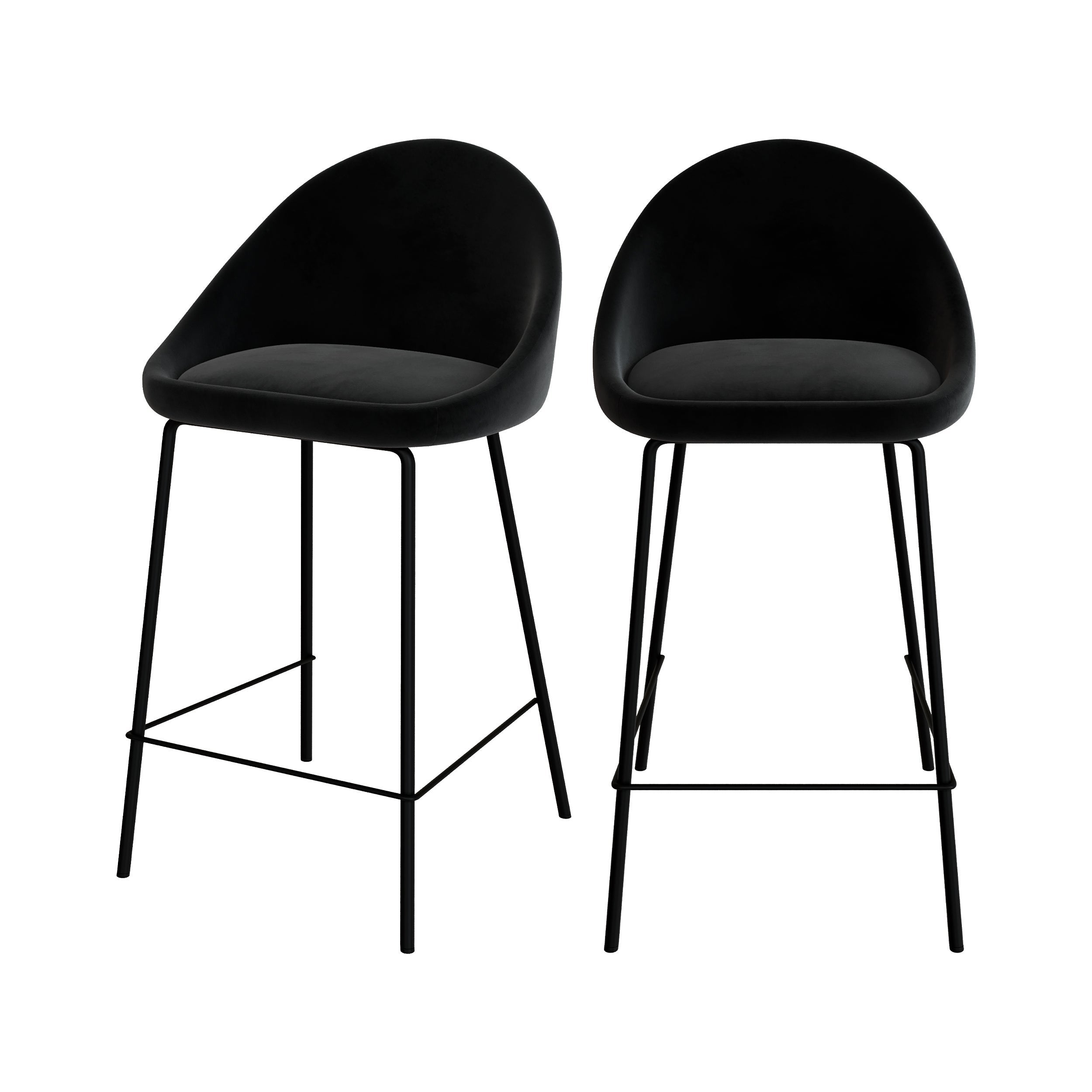Set de 2 sillas para isla de cocina en terciopelo negro 65 cm - Misty