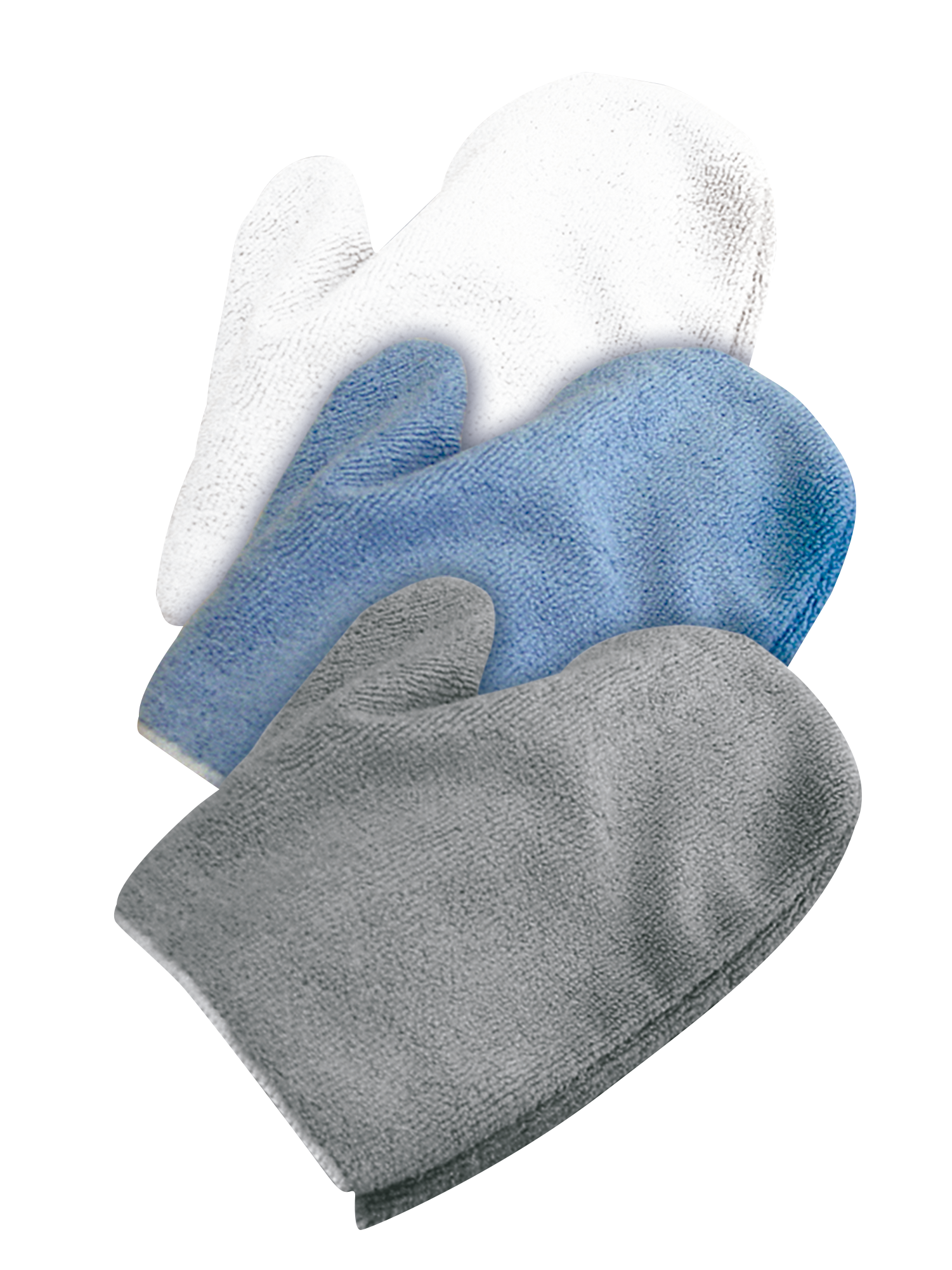 Set de 3 manoplas de microfibra multicolor para la eliminación de polvo. Indicado tanto para uso externo como interno.