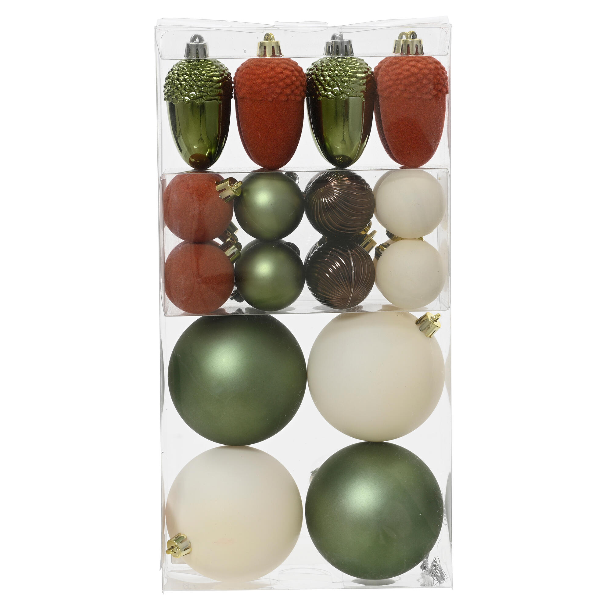 Set de 28 bolas navideñas para colgar fabricado en poliestireno de color marrón, ideal para combinar con otros adornos navideños. Indicado para colocar en interior. Si buscas completar la decoración navideña de tu hogar, en Leroy Merlín encontrarás multitud de adornos y accesorios para crear composiciones a tu gusto, escogiendo de entre una amplia variedad de estilos y diseños aquellos que mejor encajen en tus estancias. Ofrece 3 años de garantía. Medidas: 8 cm de diámetro.