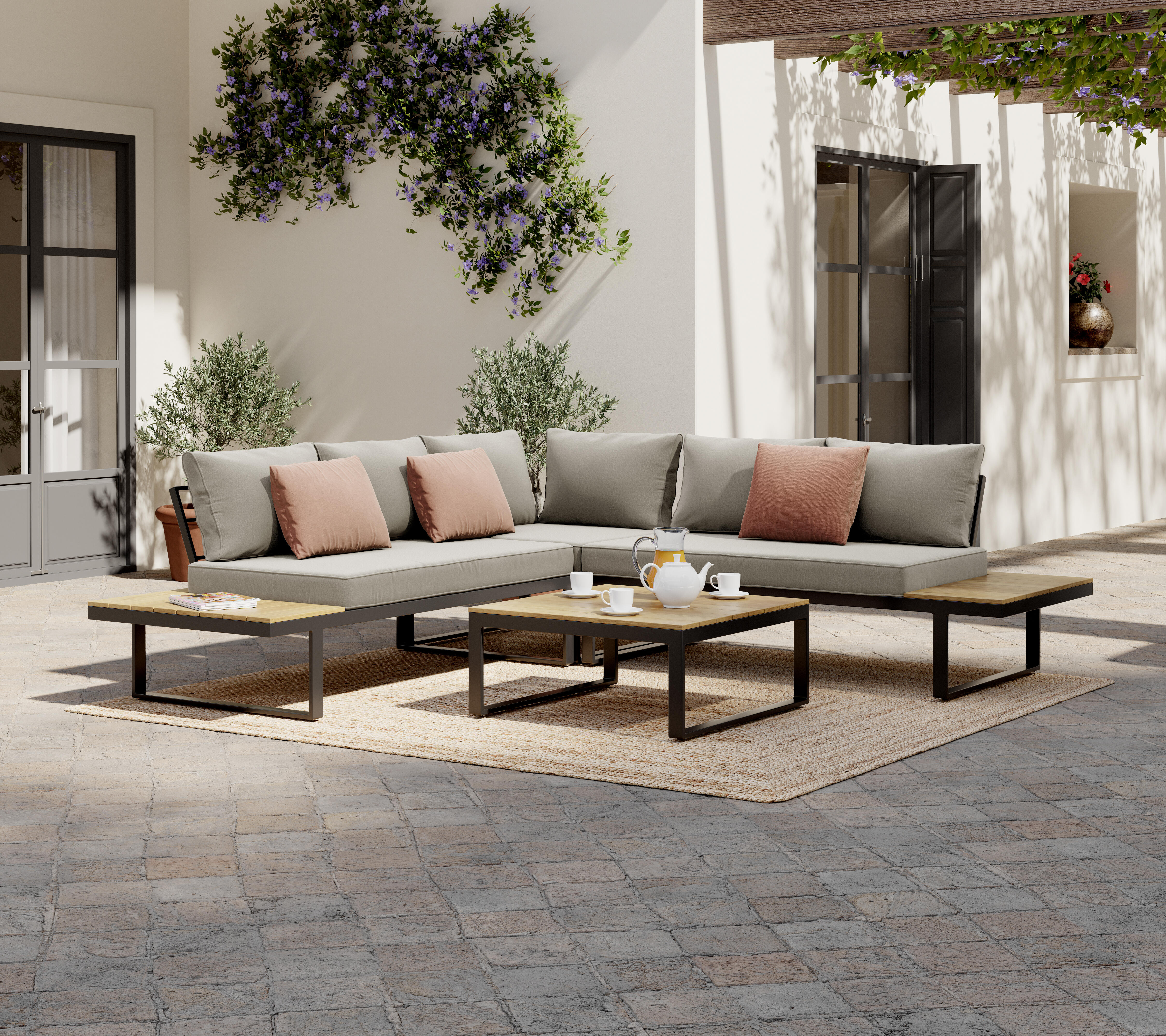Set de porche de jardín esquinero de aluminio Capri moka