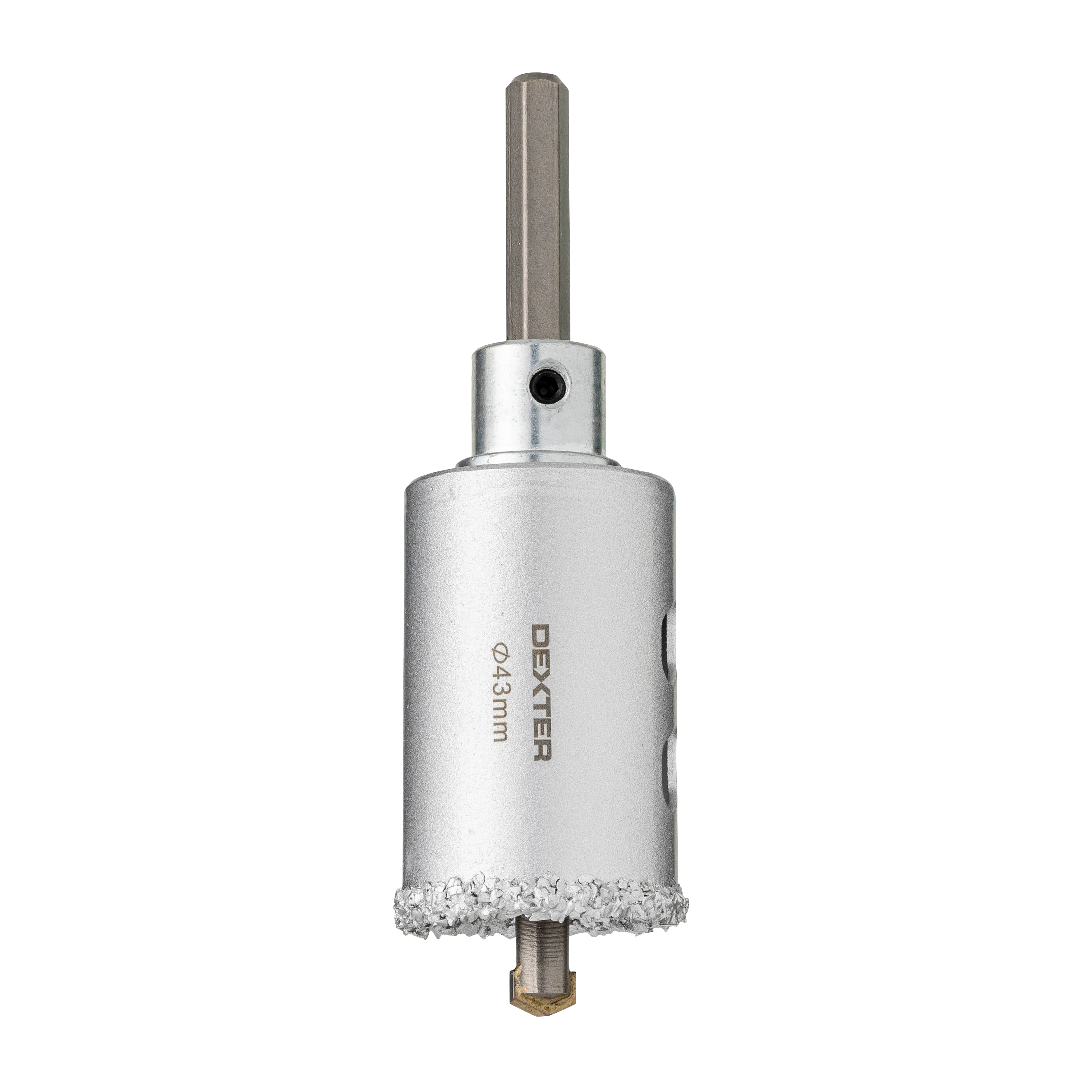 Sierra de corona Dexter fabricada en acero con pulverización de carburo de tungsteno. Indicada para trabajar baldosa. Broca de centrado y fresa cilíndrica suministradas. Ofrece 3 años de garantía. Medidas: 55 mm de longitud de la fresa.