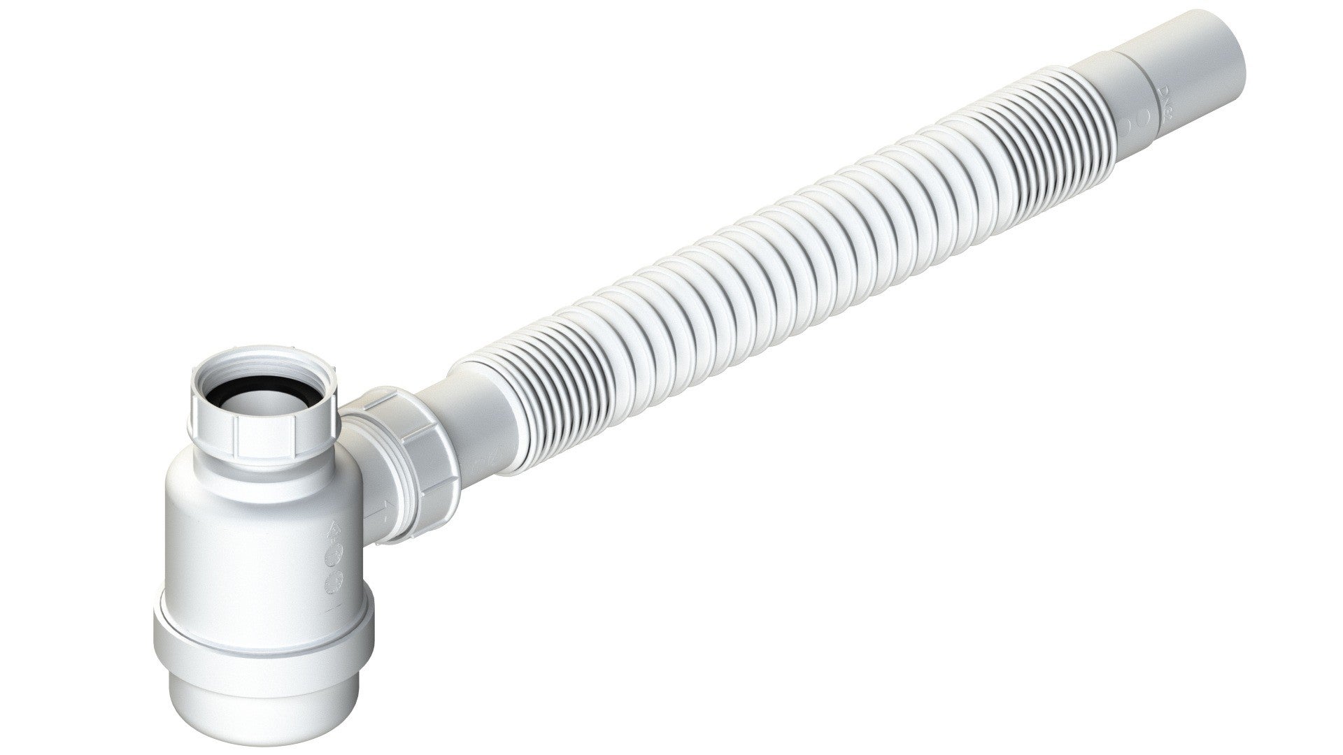 Sifón de botella MINI con conexión de manguera flexible Ø1"1/4G L.B. Plast D180-4-224 - Blanco