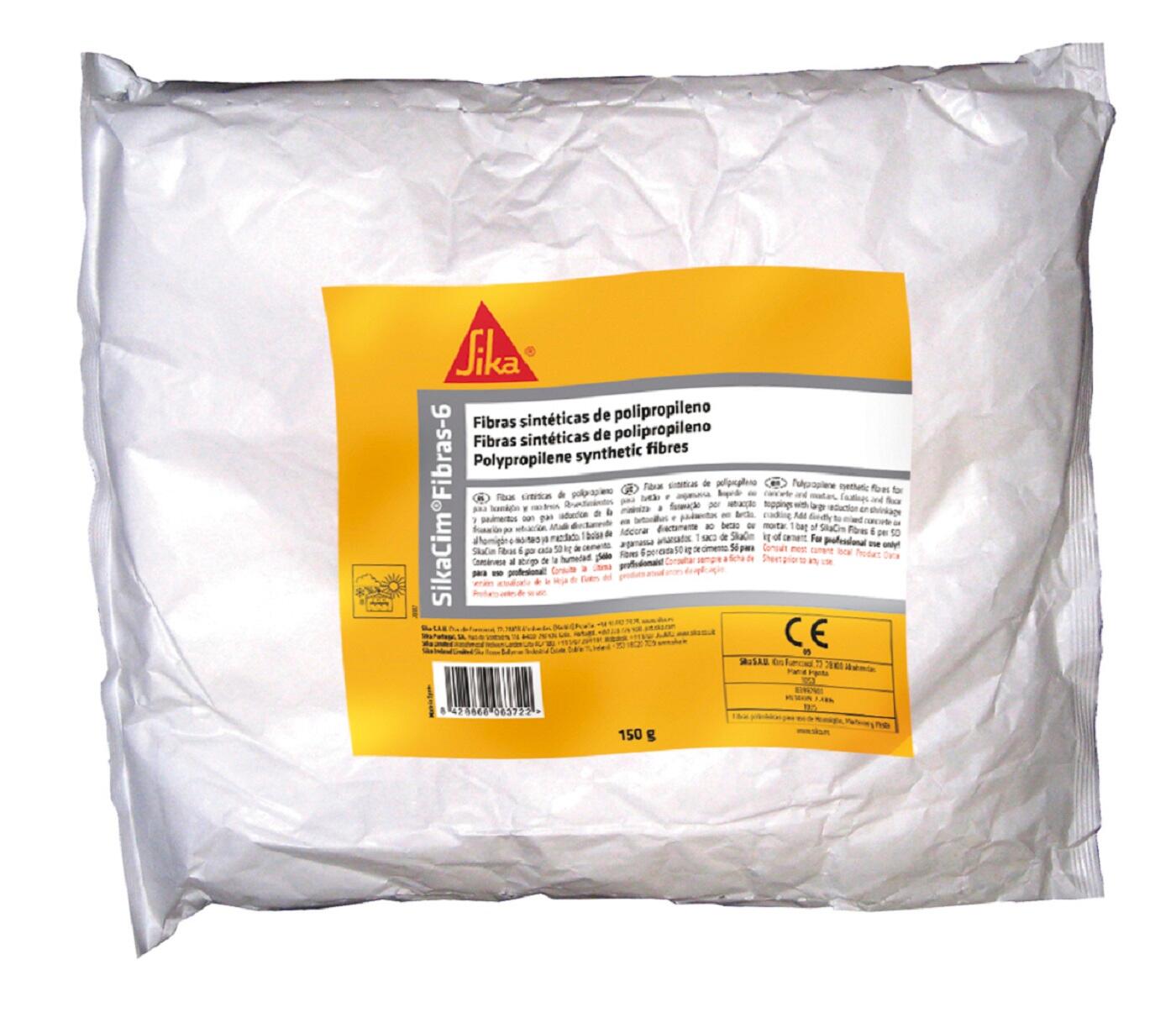 SikaCim® Fibras es una fibra monofilamento de polipropileno de 6 mm de longitud para uso en hormigones y morteros. Para la mayoría de los tipos de hormigón no estructural y morteros que necesitan reducir la incidencia de lafisuración por retracción superficial: Morteros de revoco de fachada. Losas de hormigón (soleras,recrecidos, etc.). Morteros y hormigones proyectados. Elementos prefabricados. Hormigones extrusionados. Aplicaciones en interior y exterior. Con ventajas como: Seguro y fácil de usar. Mejora la durabilidad. Reduce la tendencia a fisuración por retracción superficial. Reduce la permeabilidad. Reduce el efecto "curling" de la solera. Aumenta la resistencia al impacto