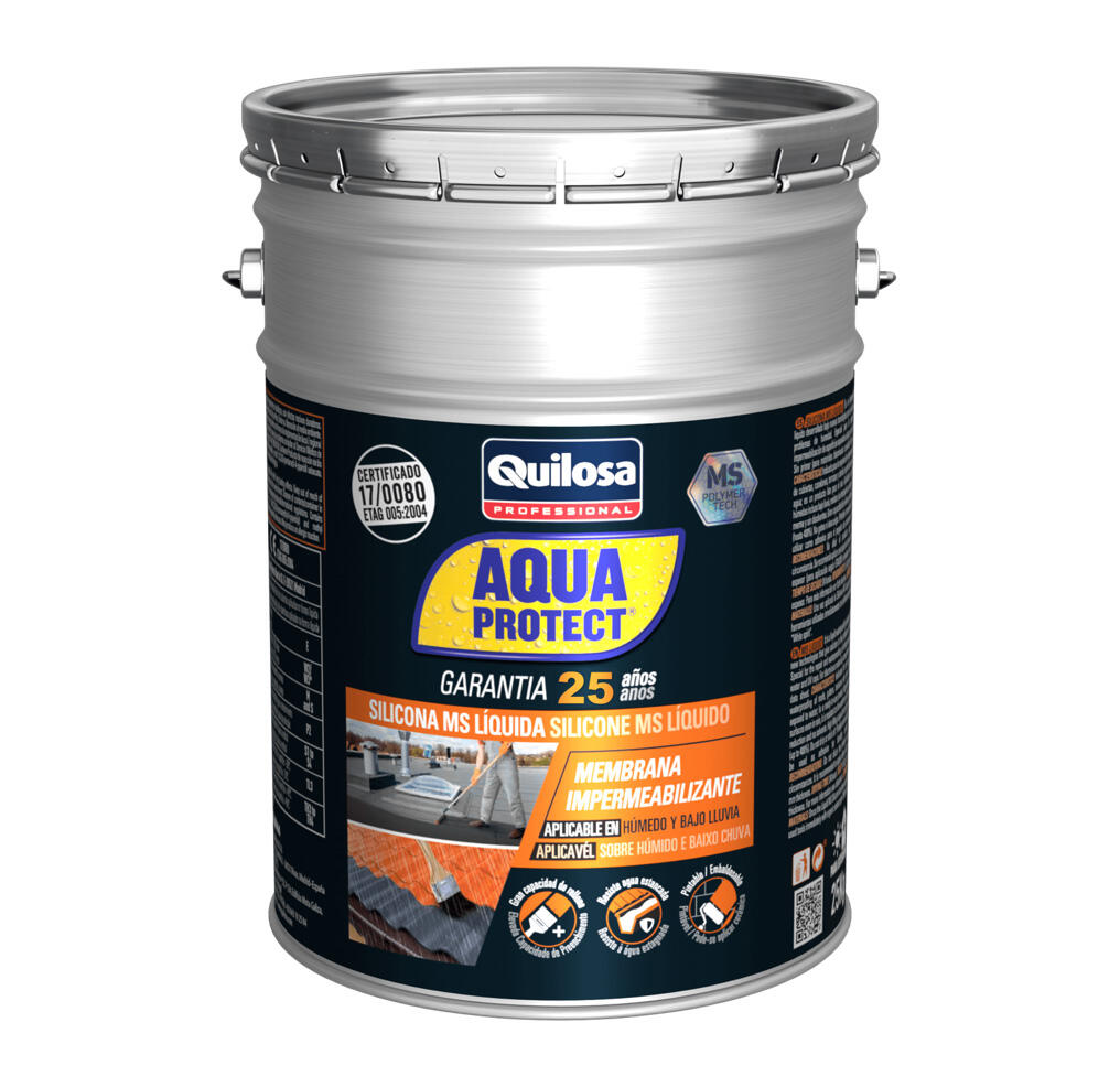 Impermeabilizante líquido desarrollado bajo nuevas tecnologías que dan solución a los problemas de humedad. Especial para la reparación e impermeabilización de superficies expuestas al agua y a los rayos UV. Indicado para la reparación e impermeabilización de cubiertas, canalones, terrazas y demás superficies expuestas al agua. Listo para el uso, sin merma y sin disolventes. Gran capacidad de relleno y alta elasticidad (hasta 400%). No gotea ni descuelga y se puede utilizar como adhesivo para el pegado de pavimento cerámico. Contenido: color gris de 5 litros.