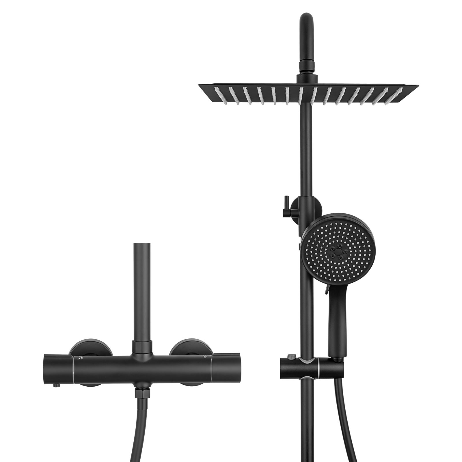 Más información Este enlace se abrirá en una nueva ventanaSOFETIY MAX - Juego de ducha negro con mezclador termostático cuadrado de 30 x 30 cm y rociador redondo de 5 chorros