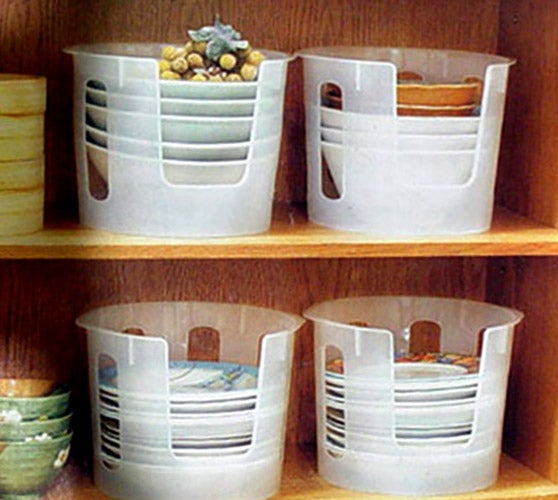 Soporte porta platos blanco de polipropileno – diseño apilable para optimizar espacio en armarios y mantener platos organizados