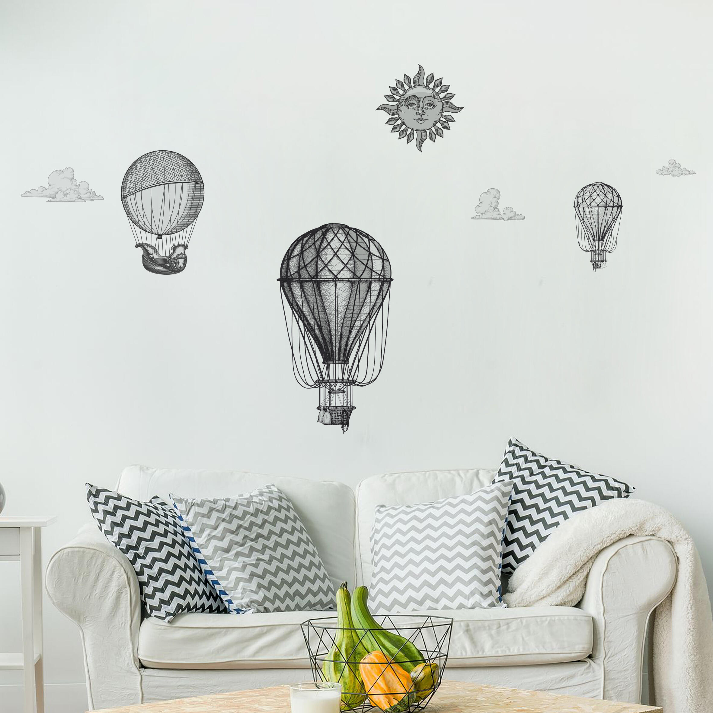 Adhesivo decorativo mural modelo Globos aerostáticos en acabado multicolor. Ideal para dar un toque personal a la decoración de tu hogar. Medidas: 200 x 32 cm (ancho x alto).