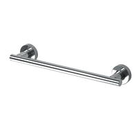 Toallero de barra fija para lavabo, fabricado en latón color cromo brillante. Su sistema de colocación es con perforación a la pared e incluye los tornillos de fijación. Medidas: 33 x 5 x 6,5 cm (ancho x alto x fondo).