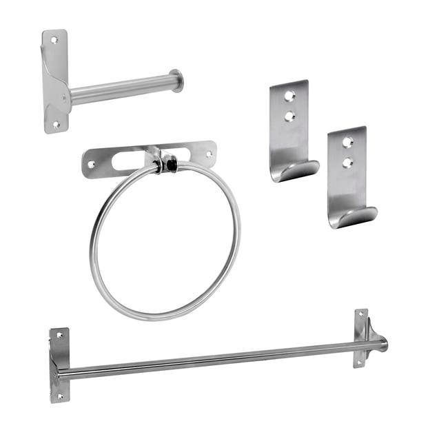 Toallero de aro móvil fabricado en acero inoxidable y acabado de color plata cepillado. Accesorio indicado para fijar a la pared mediante tornillos y tacos que se incluyen con el producto. Podrás mantener ordenadas tus toallas de baño o aseo. Ideal para colocar cerca de tu lavabo o bidé. Medidas: 18,2 x 19,2 x 4 cm (ancho x alto x fondo).