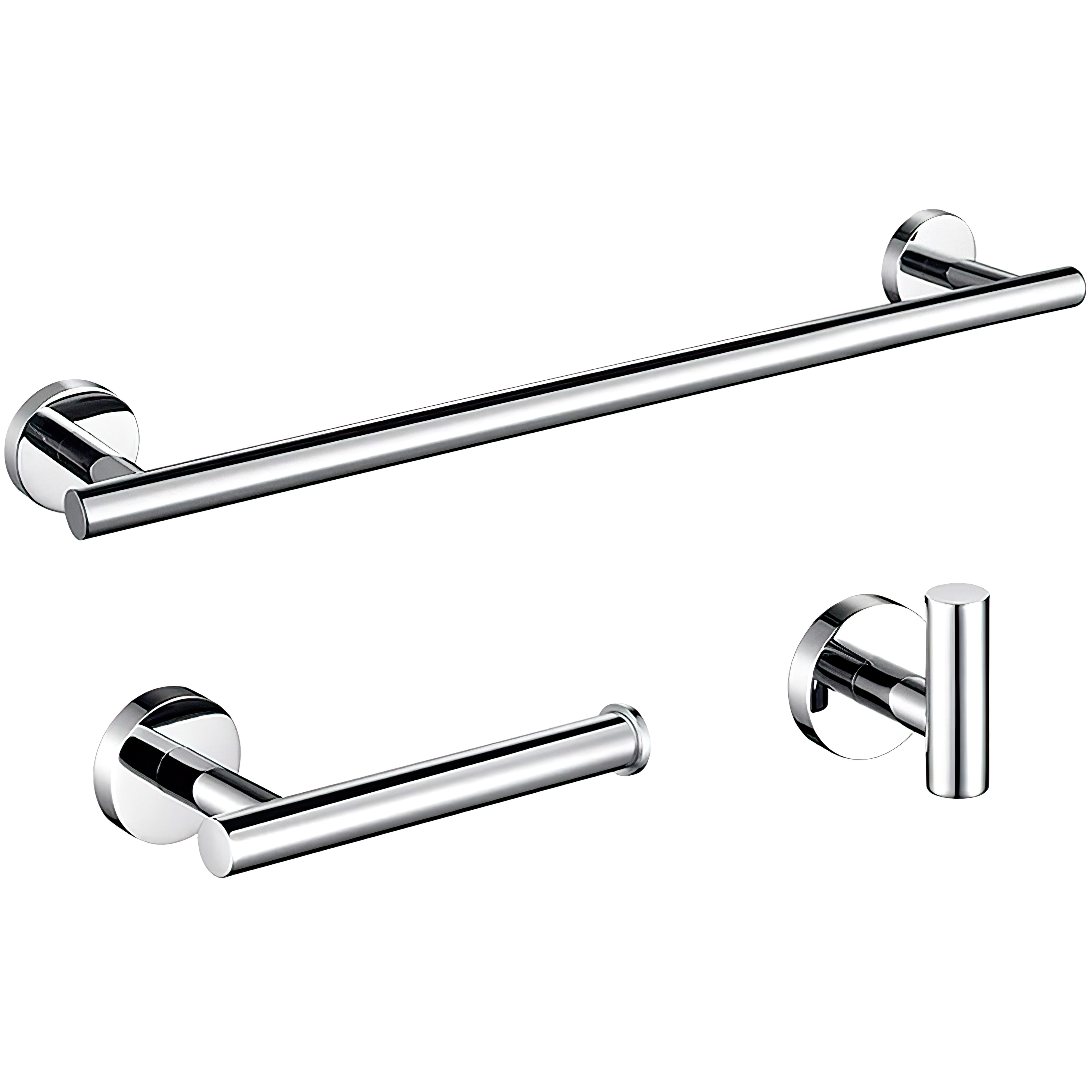 Conjunto de accesorios de baño en acabado cromado, ideal para aportar brillo y un estilo moderno a tu baño. Fabricados en acero inoxidable SUS304, combinan resistencia y diseño.