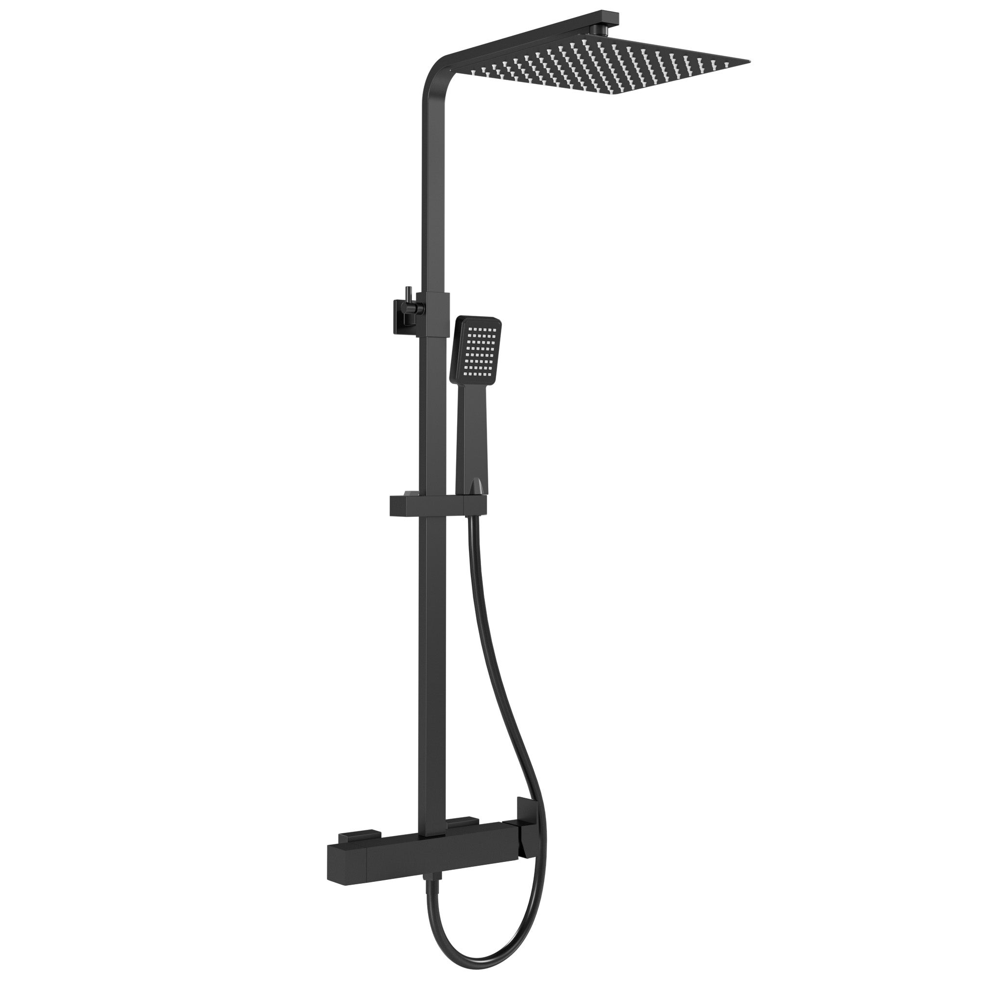 Valaz Barra de ducha monomando cuadrada ajustable hasta 120CM negro mate serie Segura - 20cm