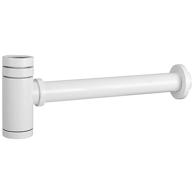 Sifón de lavabo visto redondo en color blanco, una solución estética y funcional para tu baño. Su diseño elegante y sencillo se adapta a diferentes estilos de decoración, a la vez que proporciona un drenaje eficiente y seguro para el lavabo.