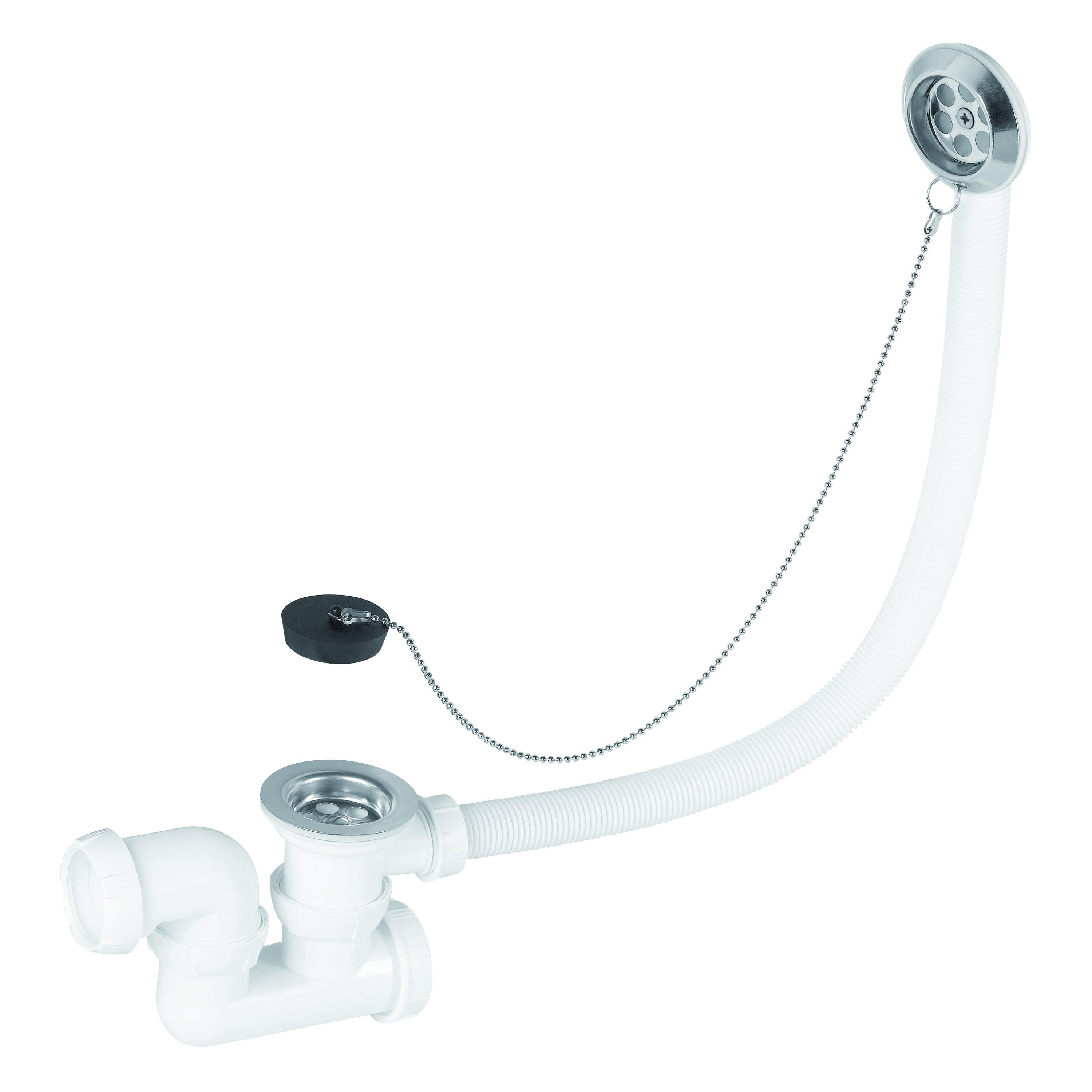 Válvula sifónica para bañera Equation fabricado en polipropileno y desagüe de acero inoxidable con acabado cromado. Válvula de 1''1/2 con tapón y cadena. Sifón orientable ajustable para mejor opción de instalación en caso de reforma. Ofrece una garantía de 5 años. Medidas: 70 mm de diámetro.