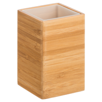 Vaso para lavabo de baño Sensea fabricado en bambú con acabado natural, y forma cuadrada. Ideal para colocar en tu encimera de baño o lavabo y organizar los cepillos de dientes. Medidas: 7 x 11 cm (ancho x alto).