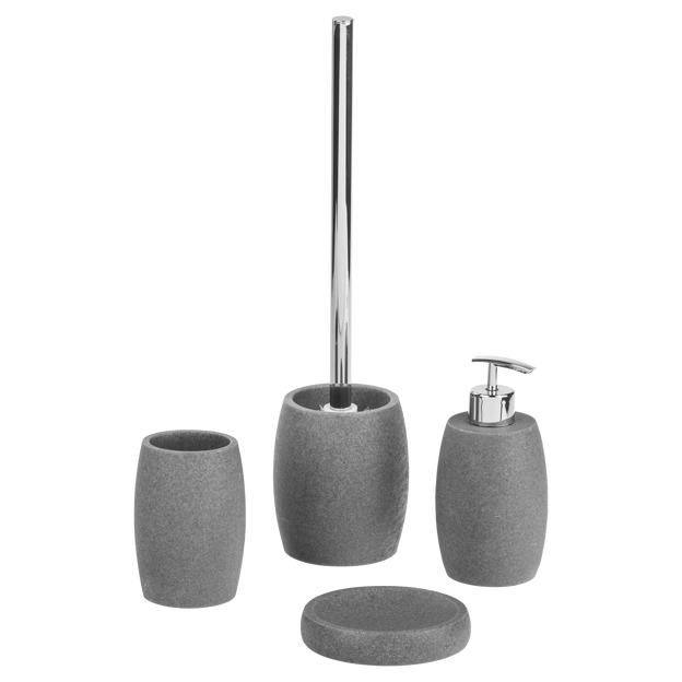 Vaso portacepillos redondo para baño Sensea fabricado en polirresina de color gris. Podrás colocarlo en la encimera o lavabo de tu baño, sin necesidad de hacer agujeros en la pared. Ideal para organizar los cepillos de dientes cerca del lavabo. Puedes decorar tu baño o aseo combinando este producto con el resto de accesorios de la serie Sand disponible en Leroy Merlin. Medidas: 8 x 11 cm (ancho x alto).