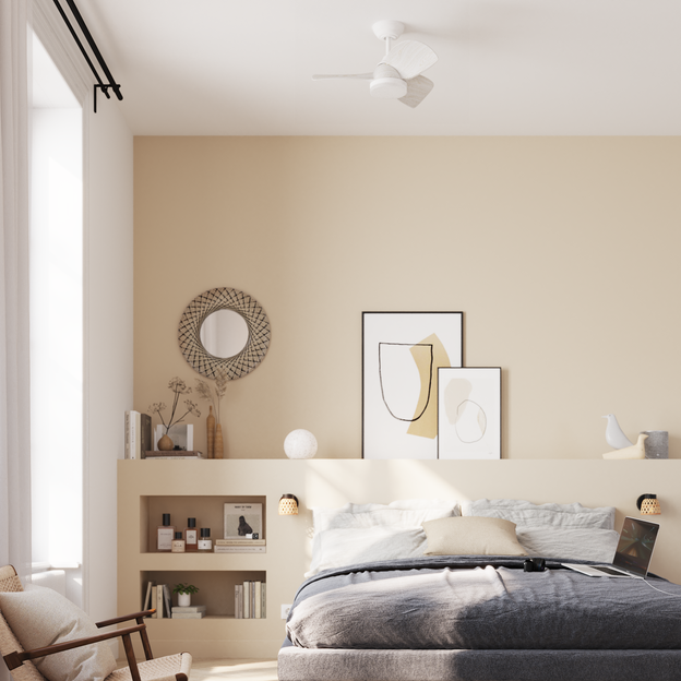 El ventilador de techo proporciona un flujo de aire fuerte y efectivo con múltiples ajustes de velocidad para regular la refrigeración según sea necesario. Es muy silencioso e inaudible, incluso a velocidades más altas, lo que lo convierte en ideal para usar en dormitorios. El ventilador tiene un diseño atractivo y moderno que se adapta bien a diversos decorados de habitación. También incluye una función de luz con brillo y temperatura de color ajustables como funcionalidad adicional.
