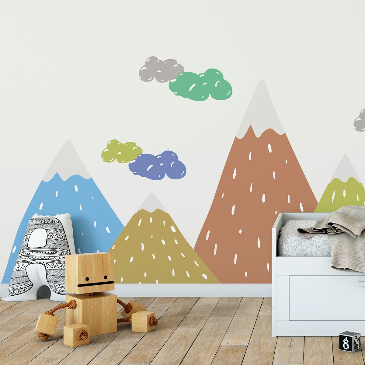 Vinilo niño escandinavo de montaña dipaka - adhesivo de pared - revestimiento sticker mural decorativo - 120x180cm