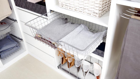 En Leroy Merlin, puedes personalizar cada parte de tu armario. Desde los materiales y acabados hasta el tipo de puertas (correderas o abatibles). La distribución interna es flexible, con baldas ajustables, compartimentos flexibles y configuraciones según tus preferencias. Estos sistemas de almacenaje mejoran la organización gracias a opciones prácticas como gavetas, estantes y colgadores, con divisiones útiles y zonas accesibles.